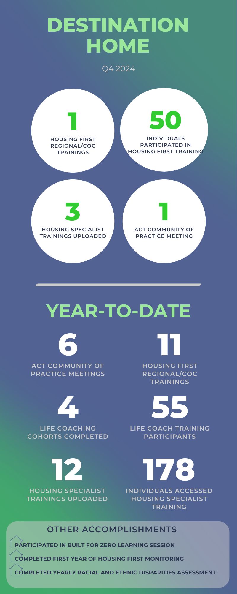 Destination Home is a joint initiative of the Kansas Statewide Homeless Coalition (KSHC) and the Kansas Department of Aging and Disability Services (KDADS). The program marks a significant milestone for the agencies’ partnership and collaboration. By leveraging each organizations’ strengths and expertise, the partnership aims to improve the lives of those in need and provide better care and services to the community. Destination Home was designed to support the creation of permanent housing solutions and introduce a Housing First model across the state. Furthermore, it aims to provide a supportive transition process to help individuals move from state institutions into the community. The Director of Destination Home has contributed to the development of policies and procedures aimed at facilitating the transition of individuals from state institutions to community living. Destination Home has taken steps to enhance the delivery of health services to individuals in Kansas. The program has begun to send key stakeholders through Health and Wellness Life Coach training programs. This approach is intended to offer a more comprehensive and holistic method of providing health services to the community.
