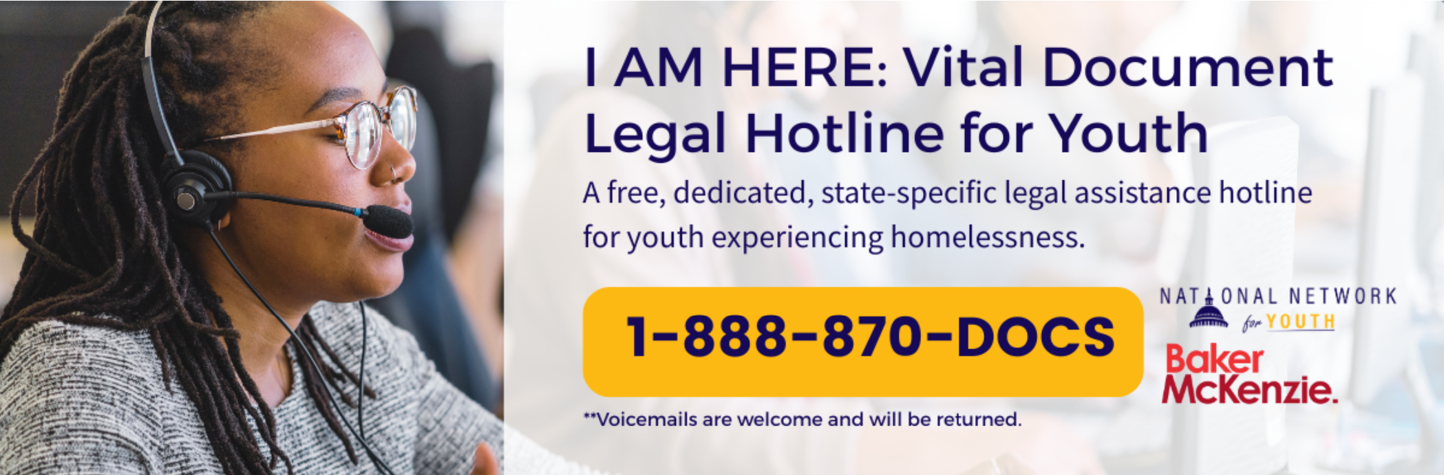 That’s why the National Network for Youth and Baker McKenzie are launching the I Am Here: Vital Document Legal Hotline for Youth, a free national resource to help youth navigate this complicated system with support from legal professionals who know the ins and outs.